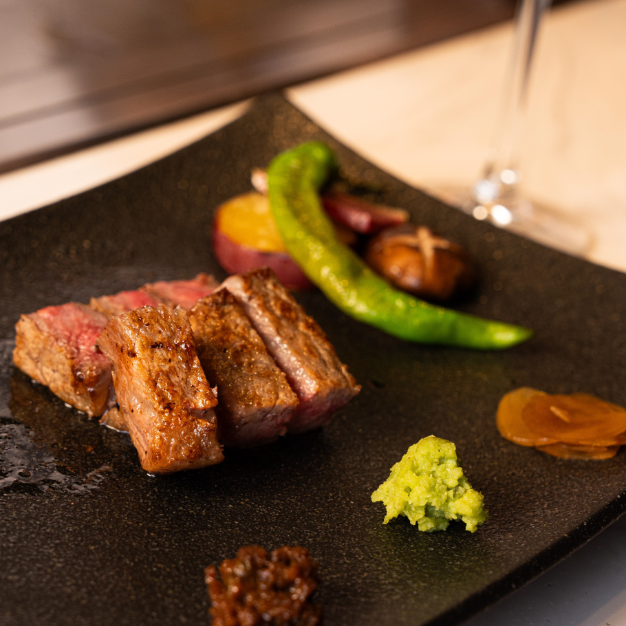 全ての料理を鉄板で仕上げる贅沢なひととき。