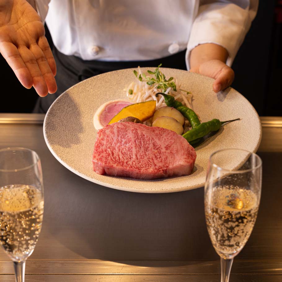 大切な方との特別な時間を豪華な鉄板焼きディナーでサプライズ!メッセージ付きデザートプレートご用意ございます。