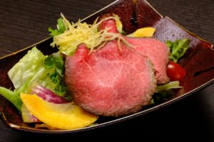 野性味溢れる神戸牛の赤身をミディアムレアで食べ比べていただきます。
