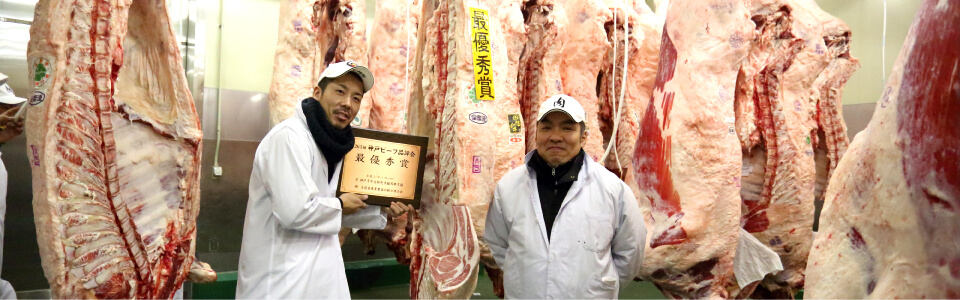 神戸牛品評会へ直接出向き、直接買い付け。他社には真似できない「質」と「量」の安定供給